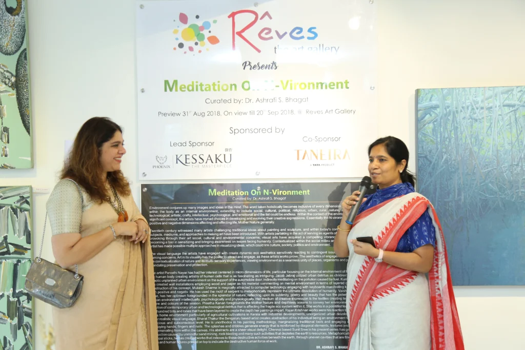Environment conjures up many images and ideas mentally. e word taken holistically manifests in becominginclusive of every dimension of our life. It begins within the body as an internal environment-physiological,psychological, intellectual-, extending to include social, cultural, and political, religious, urban, rural, nature, arti cial, industrial, technological, artistic, cray, and emotional with endless possibilities. Within the context of the environment that admits to becoming a signi cant concept, the artists have myriad choices in developing and evolving their creative expressions. Essentially the N-vironment references the positive and negative dimensions affecting and effecting life in metros and rural areas as well as Mother Nature generally. Twentieth century witnessed many artists challenging traditional ideas about painting and sculpture, and within today’s contemporary milieu new subjects, mediums, and approaches to making art have become popular. With artists partaking in the act of serving as agents of change, re ecting and provoking through their art social, cultural and environmental concerns, visual arts have acquired a compelling vibrancy inviting attention and becoming a tool in sensitizing and bringing awareness on issues facing humanity. Contextualized within their social milieu and reacting to issues, the artists have made possible multiple approaches in visualizing ideas, which could link culture, society politics and environment.